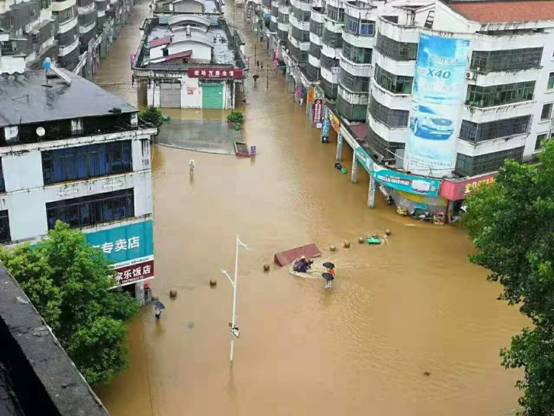2019年7月,一场足以被历史记录的大暴雨袭击宜春、新余、萍乡等地,袁河水位暴涨,严重超警戒水位,江口水库泄洪量更是达到了史无前例的2370立方米/秒,袁河水短期内暴涨,与此同时,在罗坊集镇西侧的袁河支流白洋江洪水汇入袁河(集镇段),巨大的洪流倒灌罗坊集镇、周边及沿岸。罗坊告急!7月9日仅半天,集镇和沿线村庄一片汪洋,绝大部分商铺及低层住户进水严重,损失惨重。更为严峻的是,进出集镇的咽喉要道铁路涵洞被淹没,成为暗流涌动的深潭,对外交通中断,集镇成为断水断电的孤岛。
