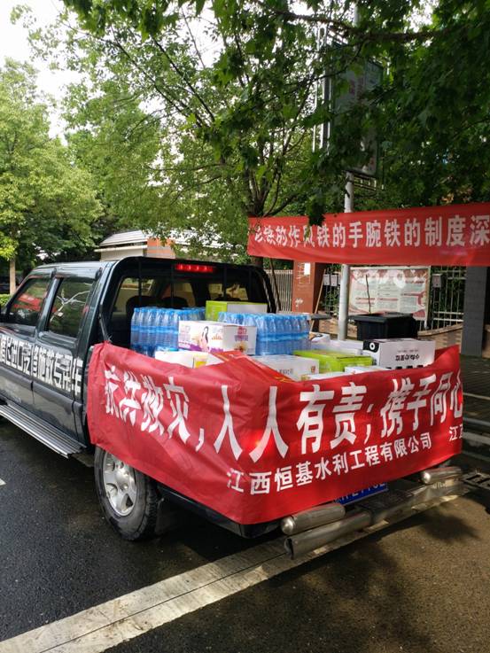 2019年7月11日,九州体育总经理廖总召开公司会议,了解地方受灾情况,心系灾区人民,并告诫大家,我们是中国的公民,社会有难时,我们更当尽己所能去帮助,于是组织行政部采购200件矿泉水、100箱面包,100件八宝粥、100件牛奶共计20000元的赈灾物质运往罗坊灾区。
