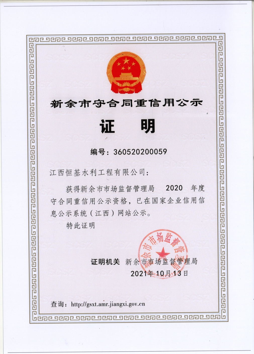 我司于2021年10月13日获得2020年度守合同重信用资格